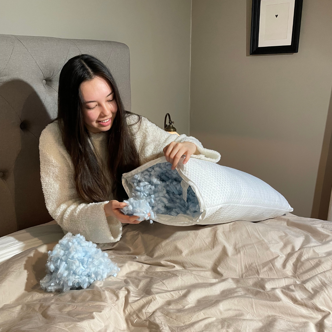 4. Anpassningsbar för alla sovställningar: Två olika konturhöjder och en fjärilsdesign förhindrar domningar och ger axelutrymme, idealisk för rygg-, sida- och magsovare.